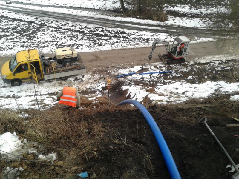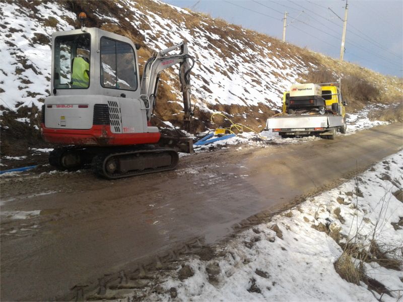 Wykonujemy przeciski rurami stalowymi oraz PCV, PE wykorzystując technologię pneumatyki udarowej. Stosujemy maszynę pneumatyczno-udarową typu „kret” HP135.